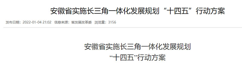 近日,《安徽省實施長三角一體化發展規劃“十四五”行動方案》發布。安徽省計劃用五年時間,讓中心區城市人均GDP基本達到長三角平均水平,全省人均GDP與滬蘇浙相對差距進一步縮小。到2025年,全省域與滬蘇浙一體化發展水平顯著提升,一體化體制機制全面建立,重點區域板塊一體化發展達到較高水平,重點領域基本實現一體化。中心區城市人均GDP基本達到長三角平均水平,全省人均GDP與滬蘇浙相對差距進一步縮小,常住人口城鎮化率達到65%左右。